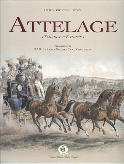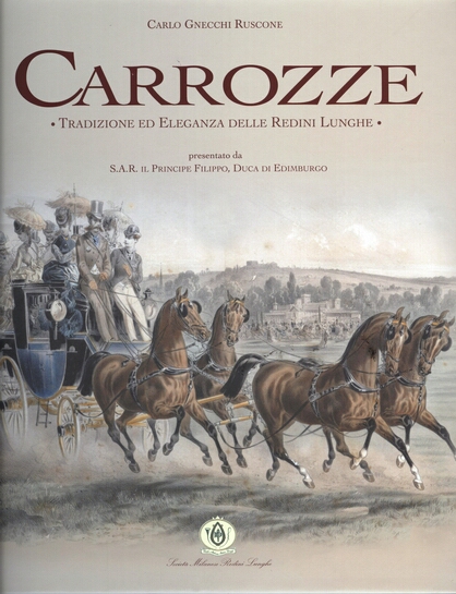 Format italien << album >> ( 33,5 x 24,5 ), 160 pages, imprimé sur papier coquille d'oeuf, nombreuses illustrations de gravures et photographies inédites en couleurs, reliure cartonné, présente l'univers italien de l'attelage et sa riche diversité